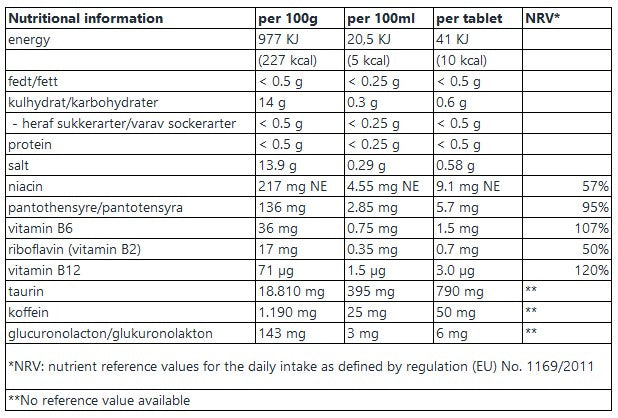 TASTE OF ENERGYEnergidrik brusetabletter indeholder en kombination af B-vitaminer, taurin, niacin og koffein. Indeho... Read more